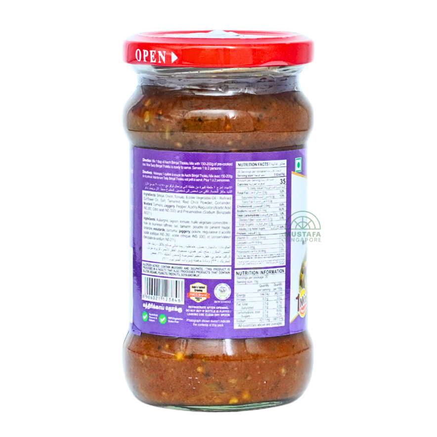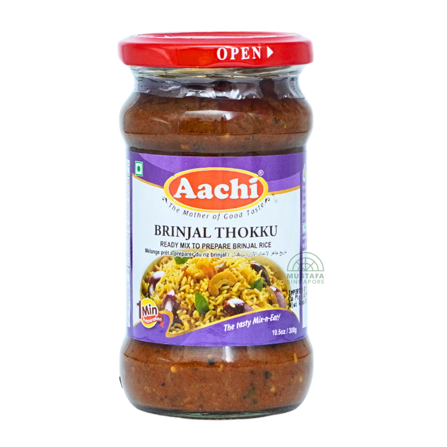 Aachi Brinjal Thokku 300g is a convenient paste for preparing brinjal rice with authentic South Indian flavors quickly and easily.