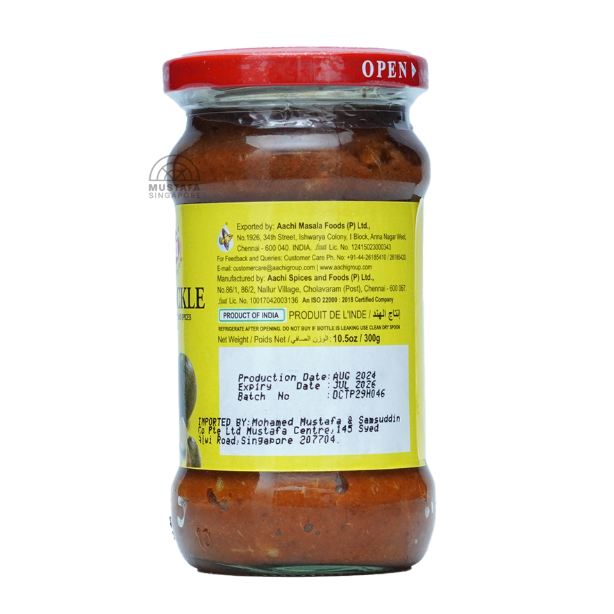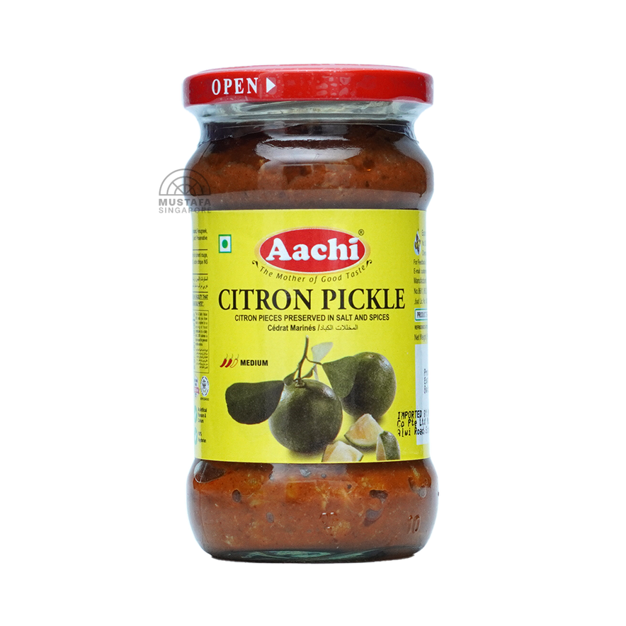 Aachi Citron Pickle 300g features tangy citron fruits blended with traditional Indian spices, delivering a zesty and flavorful accompaniment to meals.