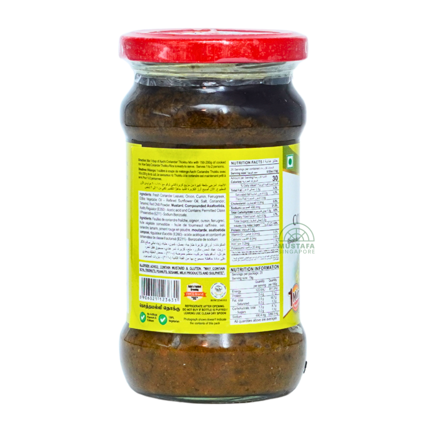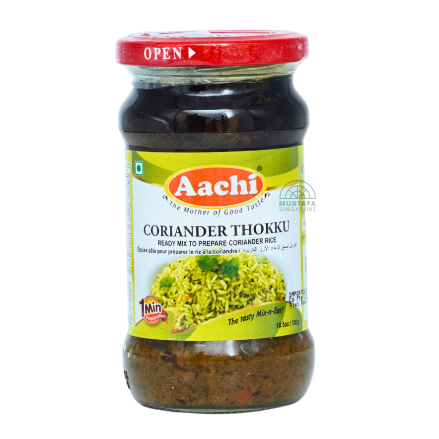 Aachi Coriander Thokku 300g is a ready-to-use paste for making flavorful coriander rice in minutes, using fresh spices and aromatic ingredients.