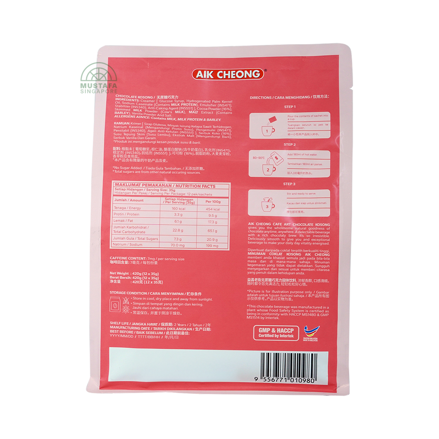 Savour pure, unsweetened chocolate bliss with Aik Cheong Café Art Chocolate Kosong 420g. Made from high-quality cocoa powder with no added sugar, this drink offers a rich and smooth chocolate flavour - perfect for those who prefer less sweetness or want to customise their beverage.