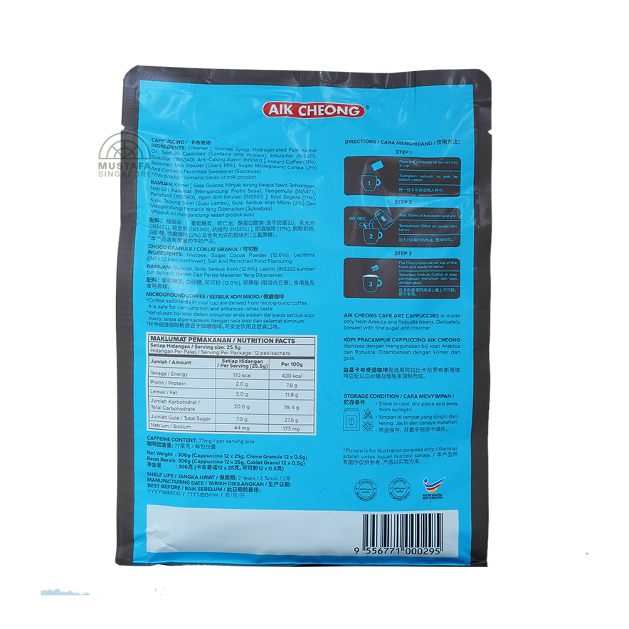 Indulge in the rich and creamy taste of Aik Cheong Cafe Art Cappuccino, a premium instant coffee blend that delivers the smooth aroma and velvety texture of café-style cappuccino at home. Perfect for a quick morning pick-me-up or an afternoon treat.