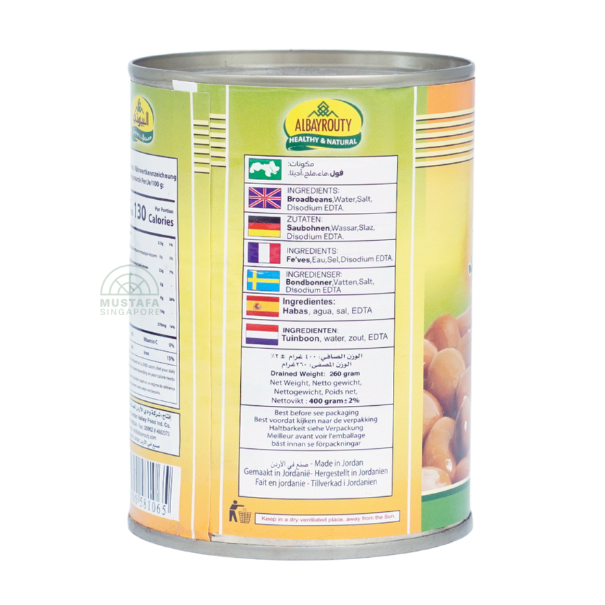 Albayrouty Broad Beans are made from carefully selected broad beans, cooked and packed to retain their natural taste and soft texture. A staple in Middle Eastern cuisine, they are perfect for foul dishes, stews, and healthy vegetarian meals.