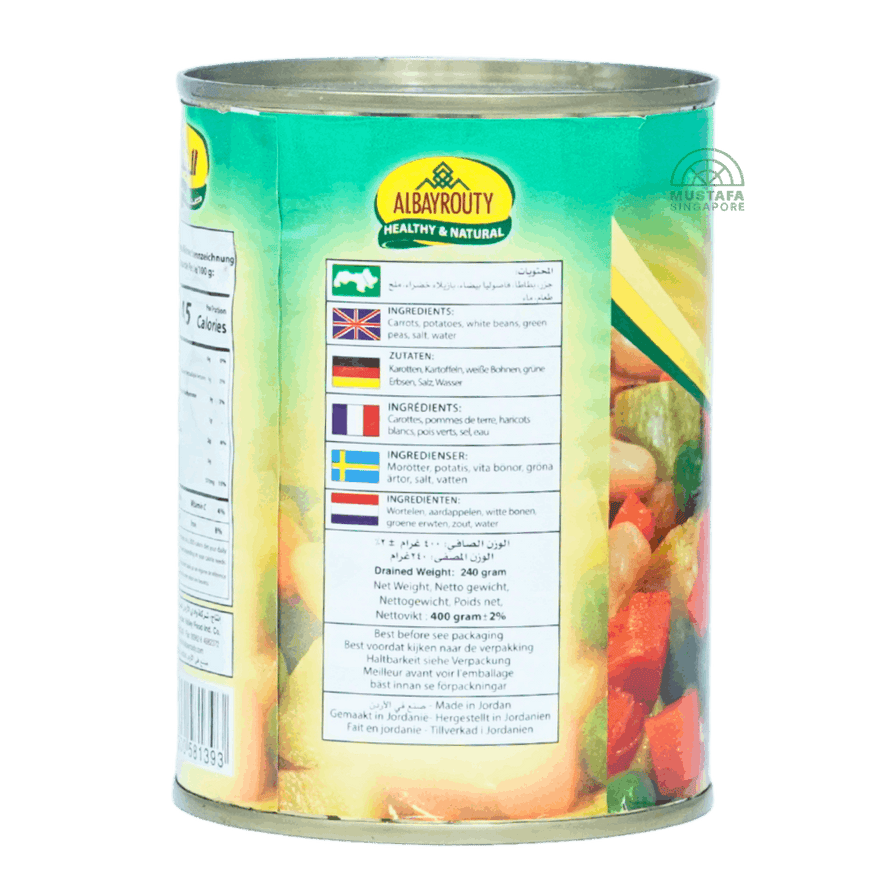 Bring color and freshness to your table with Albayrouty Mixed Vegetables. A selection of crisp carrots, cauliflower, cucumbers, and peppers preserved in seasoned brine for natural crunch and bright flavor. Ready to serve as a salad, appetizer, or accompaniment to Mediterranean meals.
