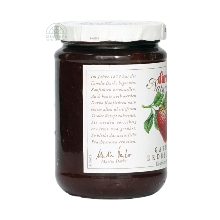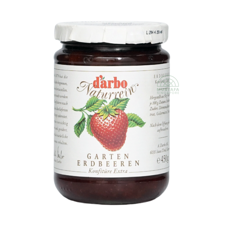 D'arbo's Naturrein Garden Strawberry Preserve is made according to traditional Austrian recipes using carefully selected garden strawberries. With a high fruit content (about 50%) and no artificial preservatives or colorings, it offers an authentic, fruity-sweet taste. Perfect as a breakfast spread, in desserts, or as a topping for pastries and yogurt.