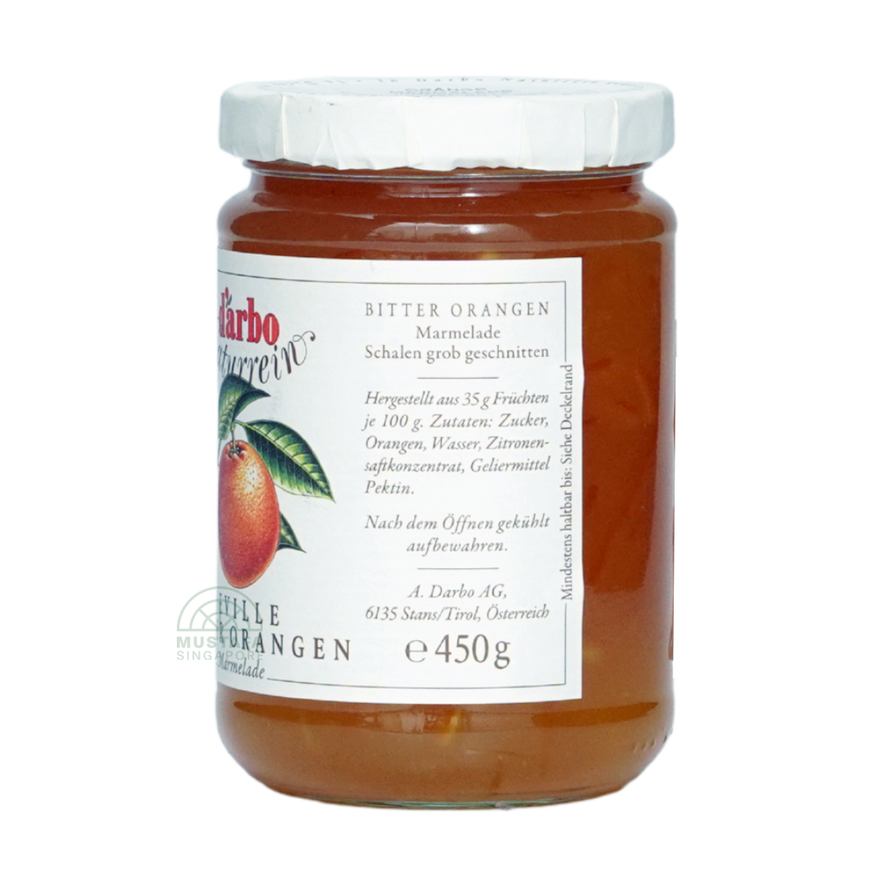 D'arbo's Naturrein Seville Bitter Orange Marmalade is a traditional Austrian spread made with sun-ripened Seville oranges, renowned for their tangy, aromatic flavor. With about 50% fruit content and no artificial preservatives or colorings, this marmalade balances a pleasant bitterness with natural citrus sweetness. Perfect for toast, pastries, and pairing with cheeses or breakfast spreads.