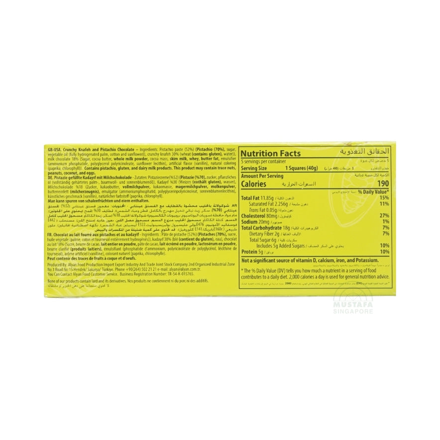 Alyan Dubai Handmade Chocolate Crunchy Knafeh Pistachio Chocolate 200g