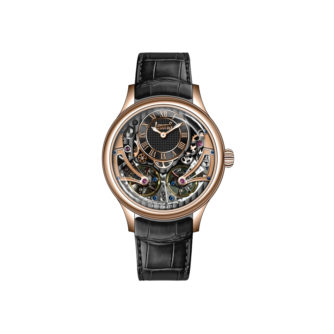 The ARBUTUS Double Balance Wheel AR2404SWB is the ultimate wrist essential for men who appreciate style and luxury. This automatic watch showcases a striking double balance wheel with one wheel purely for aesthetics and the other fully functional as part of its precision automatic movement. Unique patterns around the dial elevate its design, while the genuine Arbutus calf leather curved strap ensures a close, comfortable fit to the wrist. A perfect blend of innovation and elegance, the AR2404SWB is crafted to make a bold statement for those with discerning taste in timeless timepieces.