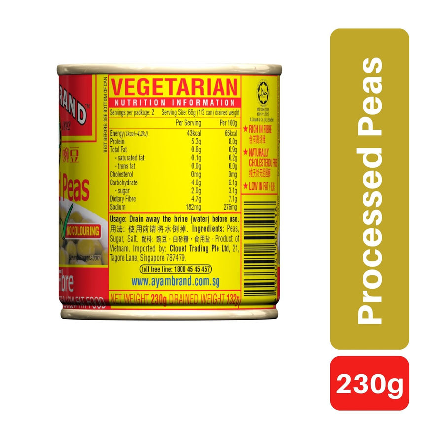 Convenient Ayam Brand Processed Peas 230g provide tender, ready-to-use peas perfect for small households, quick meals, and side dishes.