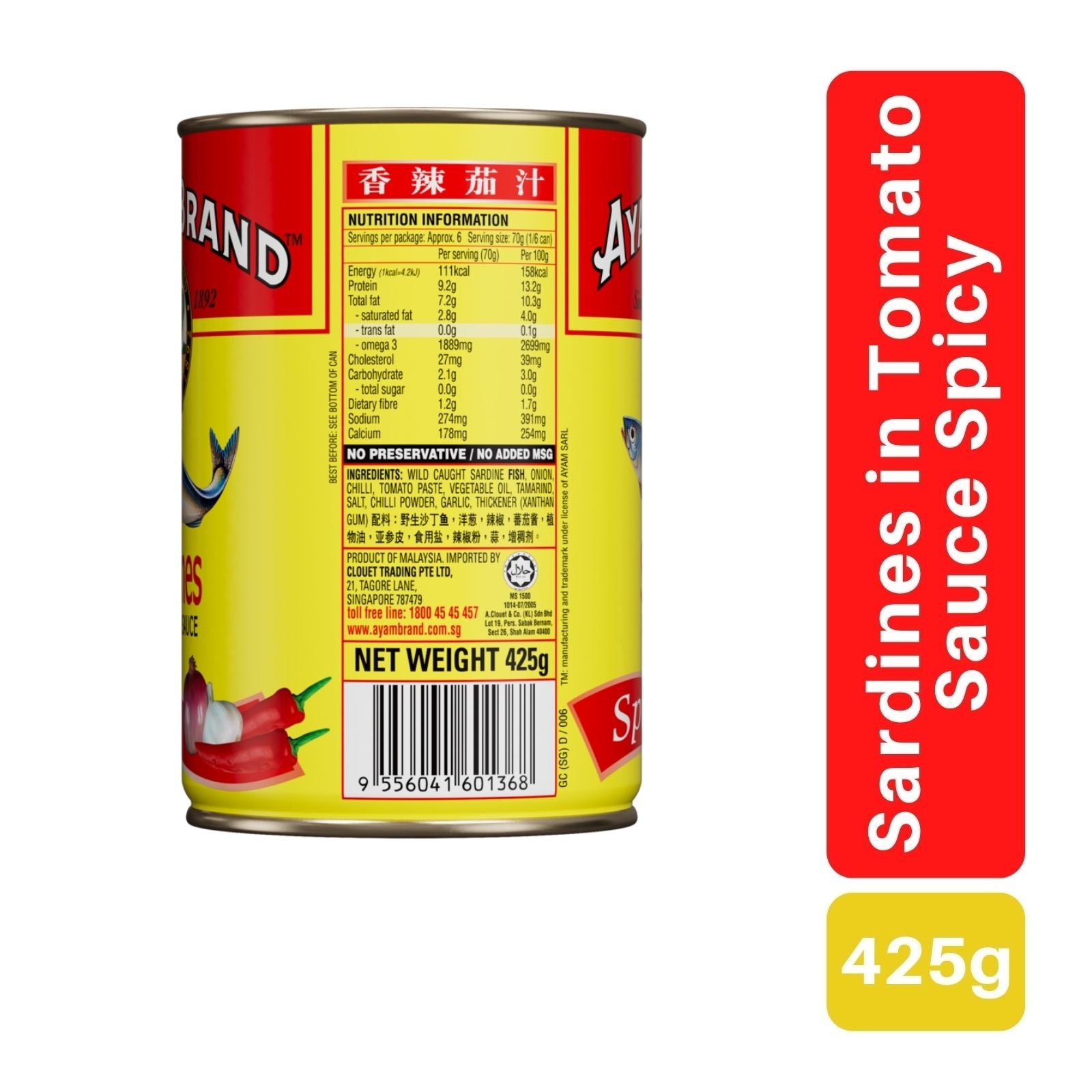 Add fiery flavor to your meals with Ayam Brand Spicy Sardines. Succulent wild-caught sardines are cooked in a rich chili-tomato sauce that's bold, aromatic, and satisfying. A powerhouse of Omega-3 and natural protein, this ready-to-eat classic pairs perfectly with rice, noodles, or bread for an authentic, spicy Malaysian taste experience.