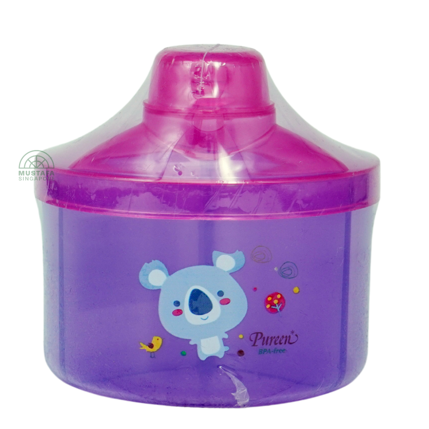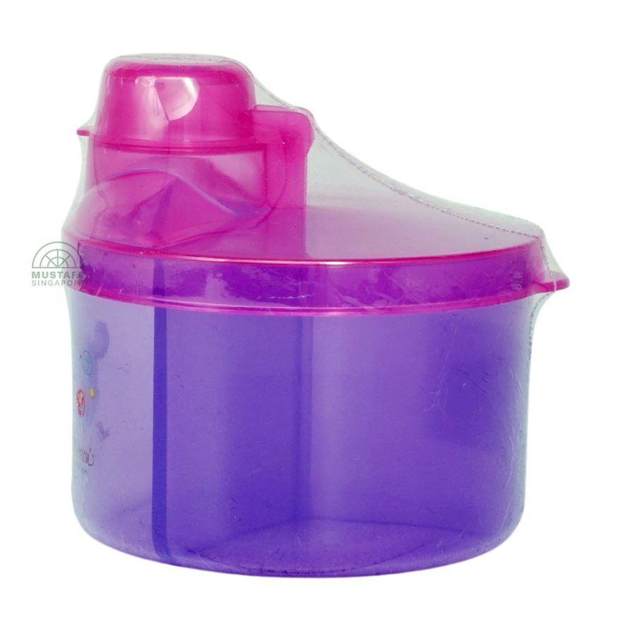 A practical milk powder dispenser designed with three separate compartments to carry pre-measured powder for feeding on the go. Durable and easy to clean.