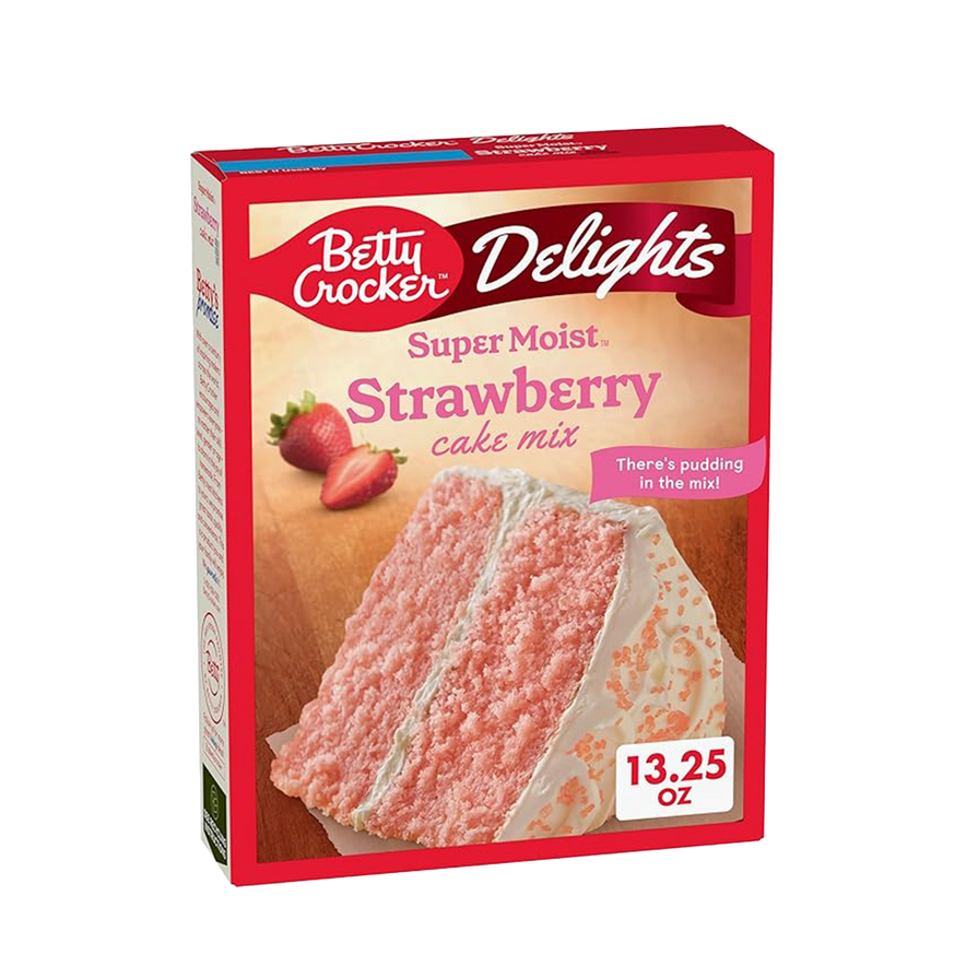 Betty Crocker Super Moist Strawberry Cake Mix is made with pudding in the mix for rich flavor and a soft, tender crumb. Simply add oil, water, and eggs to bake a delicious strawberry cake or cupcakes in minutes. Perfect for birthdays, celebrations, or everyday treats, this versatile mix can be enjoyed as is or customized with your favorite Betty Crocker recipes and frostings.