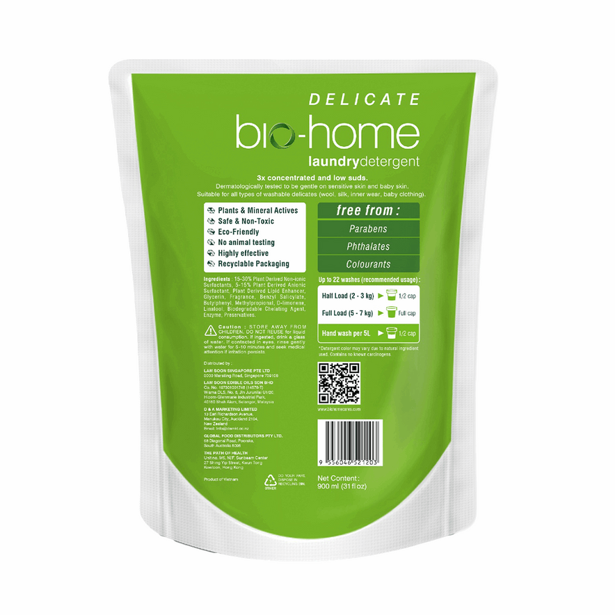 Bio-home Delicate Laundry Liquid Detergent Delicate Hyacinth & Nectarine Refill 900ml is specially formulated for fine fabrics and delicates. Made with 3x concentrated plant-based ingredients and Plantmoist technology, it cares for fabric fibres while being gentle on skin. The eco-friendly bottle uses 78% less plastic in the refill, making it a sustainable choice for conscientious households.