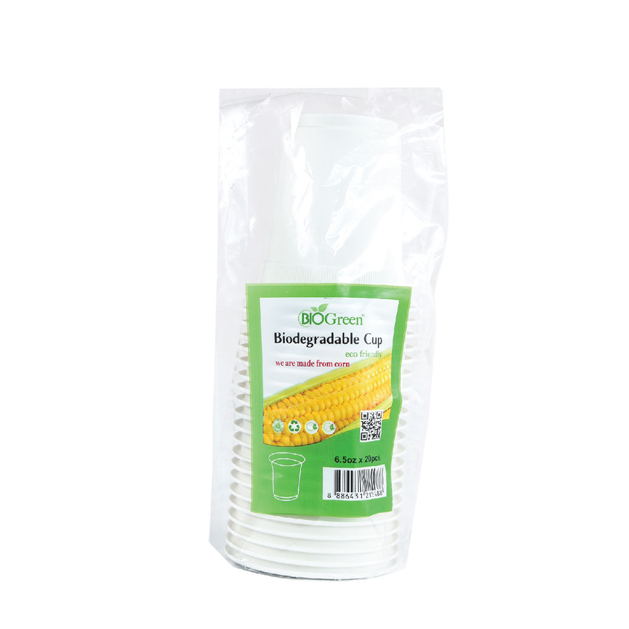 Biogreen 6.5oz cups are made from natural cornstarch, offering a biodegradable and eco-friendly alternative to single-use plastic cups. Lightweight yet sturdy, these disposable cups are ideal for serving water, juices, or small beverages at gatherings, offices, and events. A sustainable option for environmentally conscious users