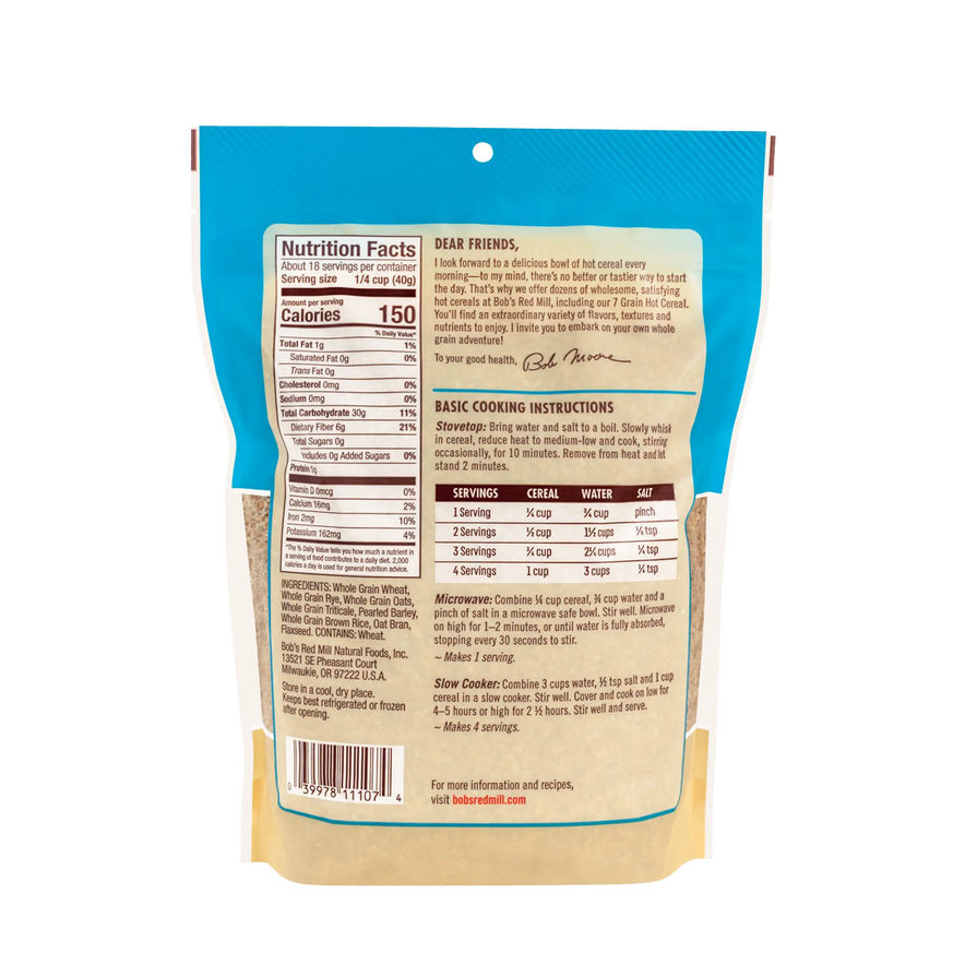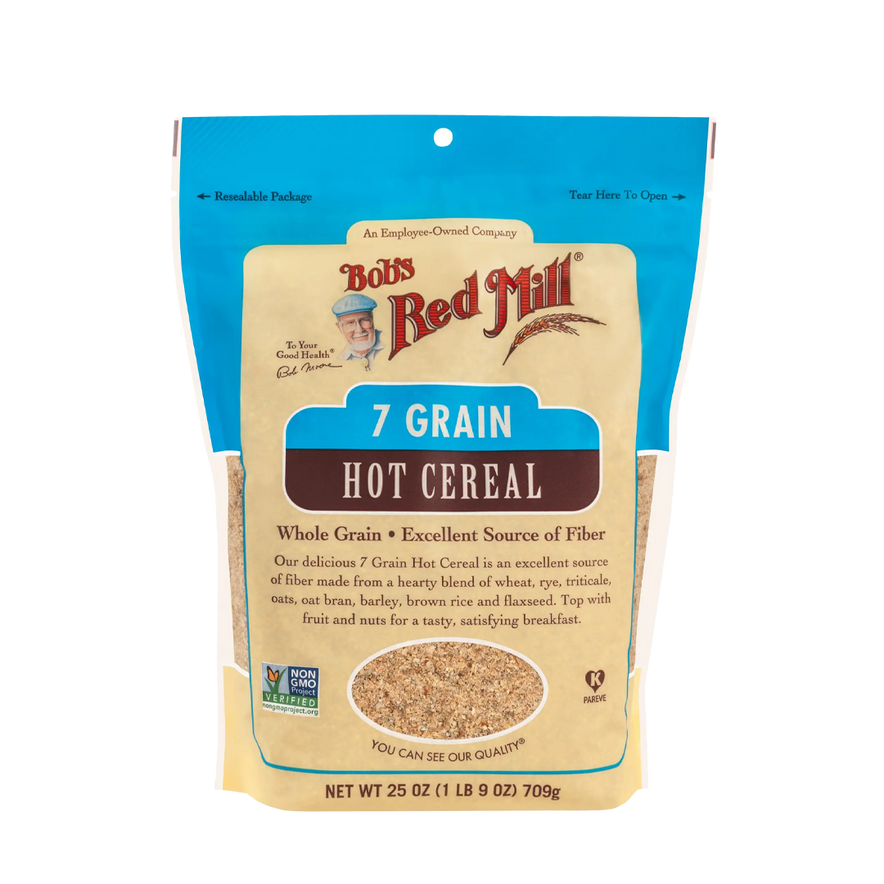 Bob’s Red Mill 7 Grain Hot Cereal is a wholesome blend of nutritious whole grains that cooks up in just 10 minutes for a smooth, hearty breakfast. A versatile alternative to oatmeal or grits, it can be enjoyed sweet with fruits, nuts, and syrups, or savory with toppings like sautéed vegetables and eggs. Packed with fiber and protein, it’s a satisfying way to start your day or serve as a nourishing side dish.
