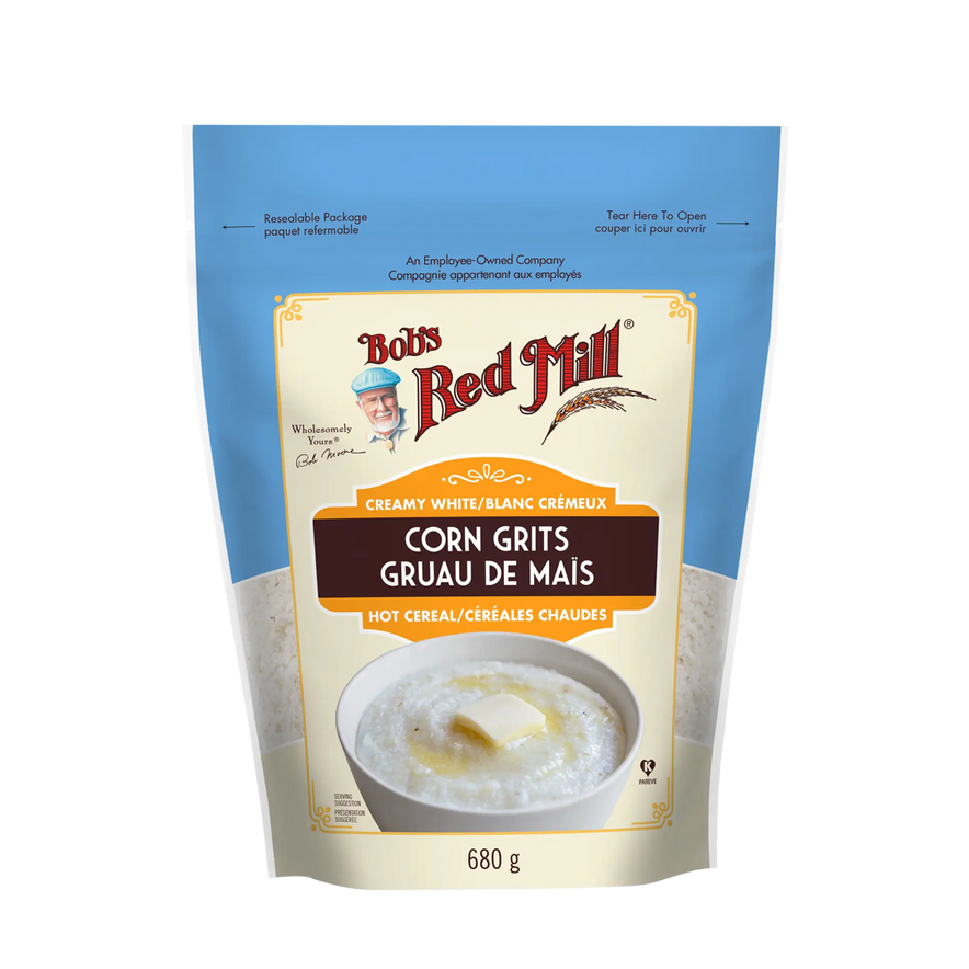 Bob’s Red Mill Creamy White Corn Grits Hot Cereal is made from premium dried corn, ground to coarse grits that absorb water, milk, or broth to cook into a creamy, flavorful dish—just like authentic South Carolina grits. Inspired by the Native American dish Rockahominie, grits are versatile enough to enjoy savory with gravy, cheese, seafood, meats, or vegetables, or sweet as a hearty breakfast hot cereal. While not instant, they cook in just five minutes for a quick, satisfying meal. For best freshness, store in an airtight container in the refrigerator or freezer.