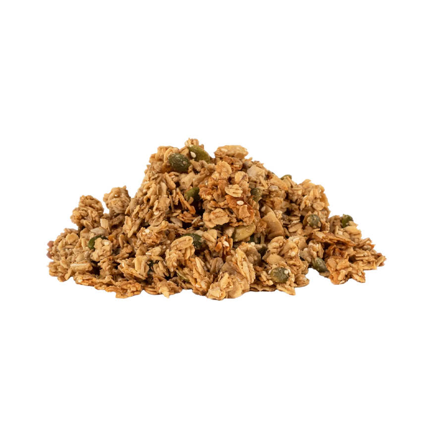Gluten Free Rolled Oats, Sunflower Oil, Maple Syrup, Cane Sugar, Almonds, Coconut, Brown Rice Crisps (Whole Grain Brown Rice, Rice Bran, Honey, Salt), Sea Salt.