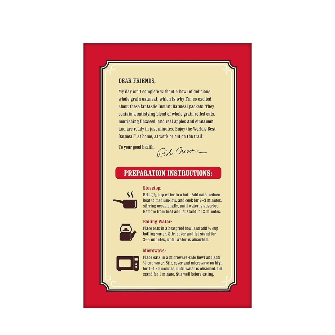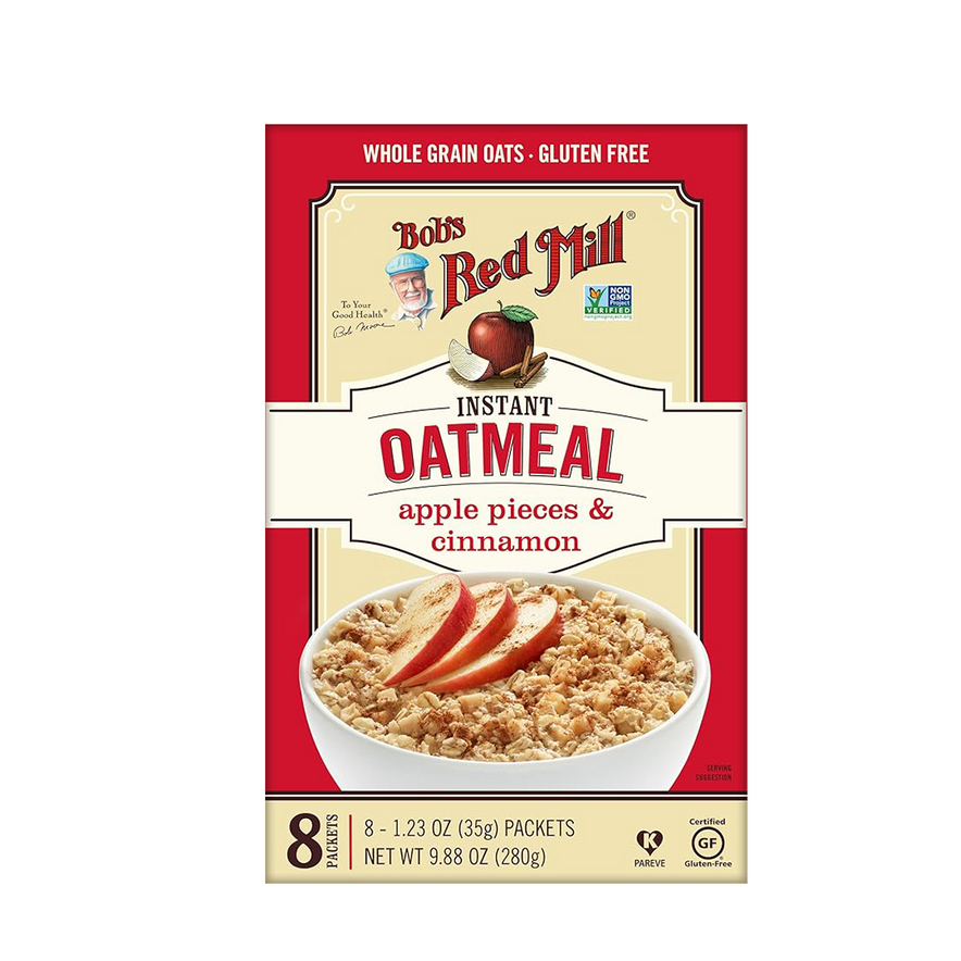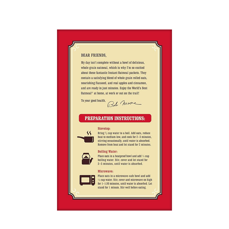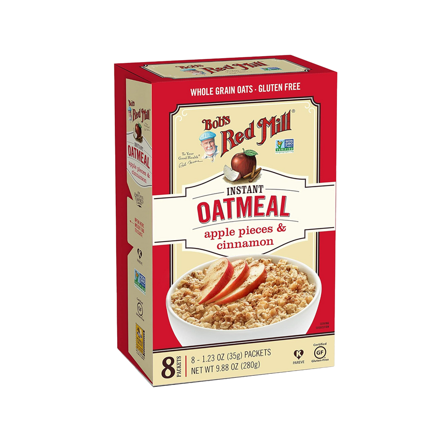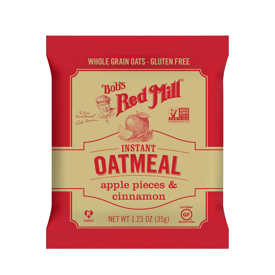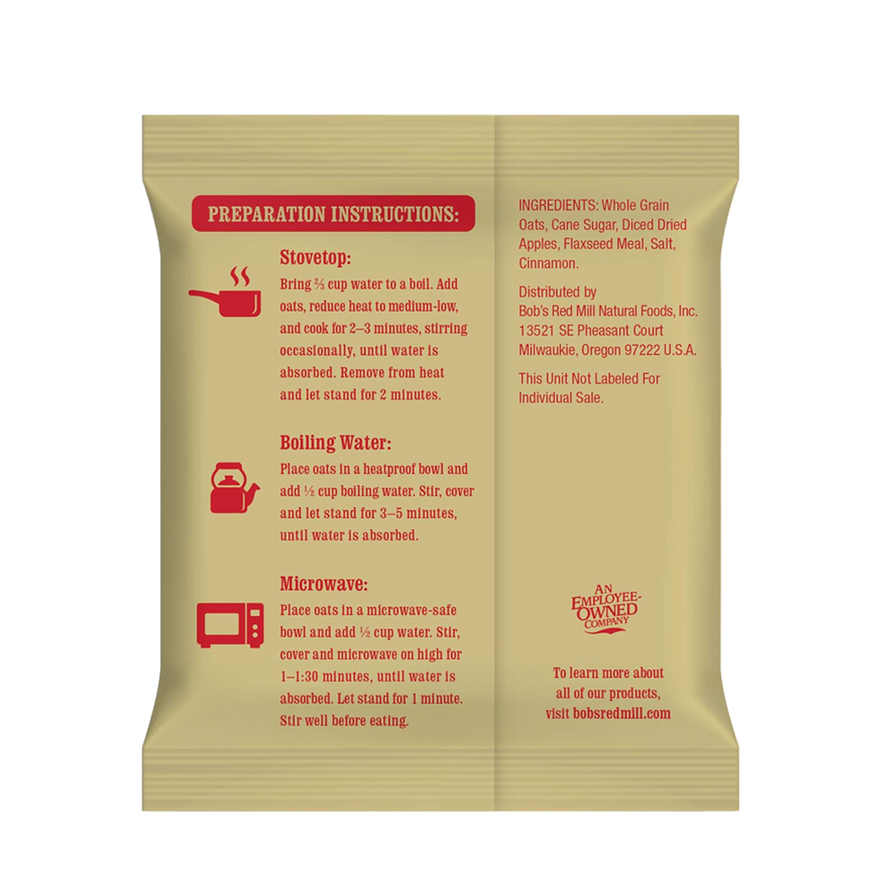 Bob’s Red Mill Apple & Cinnamon Instant Oatmeal blends our premium four-oat mix—oat bran, rolled oats, quick oats, and Scottish oats—with real apple, warm cinnamon, and brown sugar for a cozy, homemade-style breakfast in just 5 minutes. Naturally gluten-free and dairy-free, each packet offers 5g of protein and a good source of fiber, perfect for busy mornings at home, the office, school, or on the go!