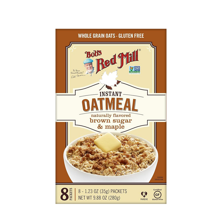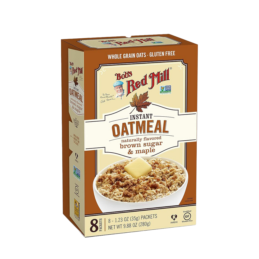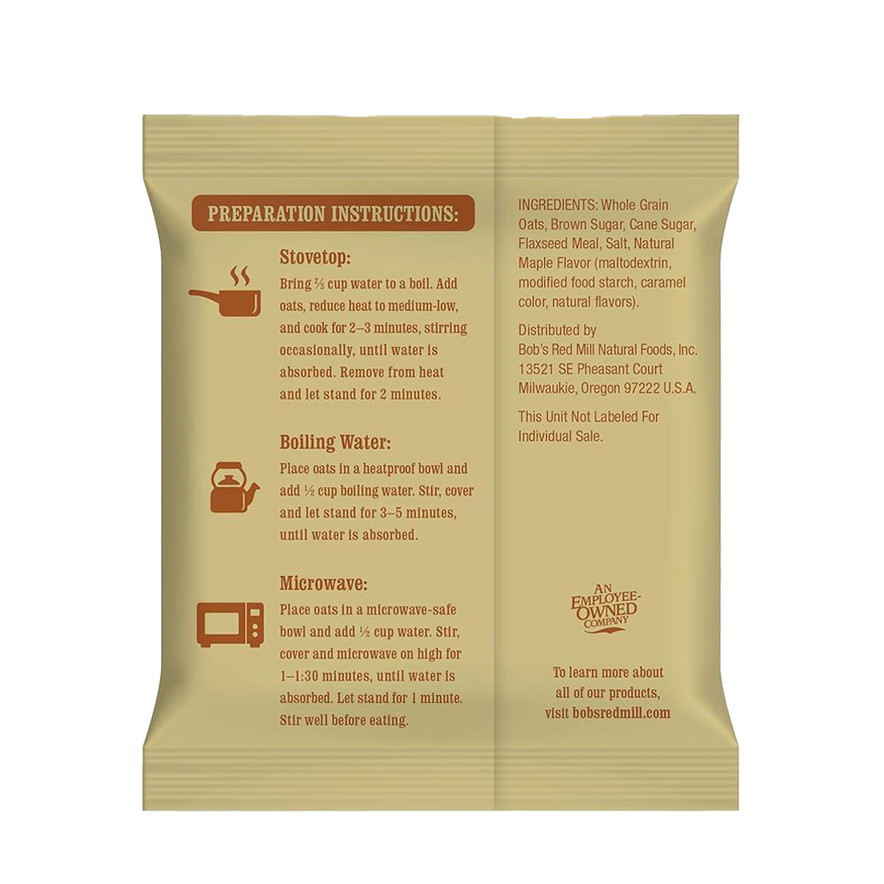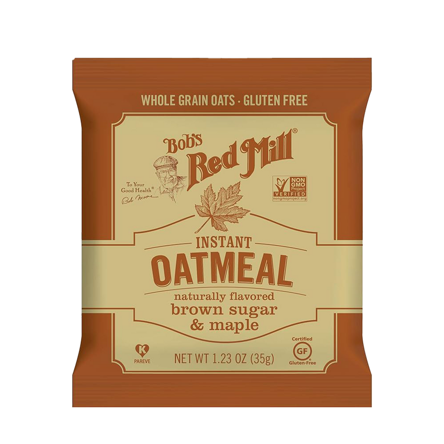 Bob’s Red Mill Maple Brown Sugar Instant Oatmeal combines our premium four-oat blend—oat bran, rolled oats, quick oats, and Scottish oats—with rich maple and a touch of brown sugar for creamy, homemade-style oatmeal in just 5 minutes. Naturally gluten-free and dairy-free, each packet provides 5g of protein and a good source of fiber. Perfect for a quick, hearty breakfast at home, work, school, or on the go!