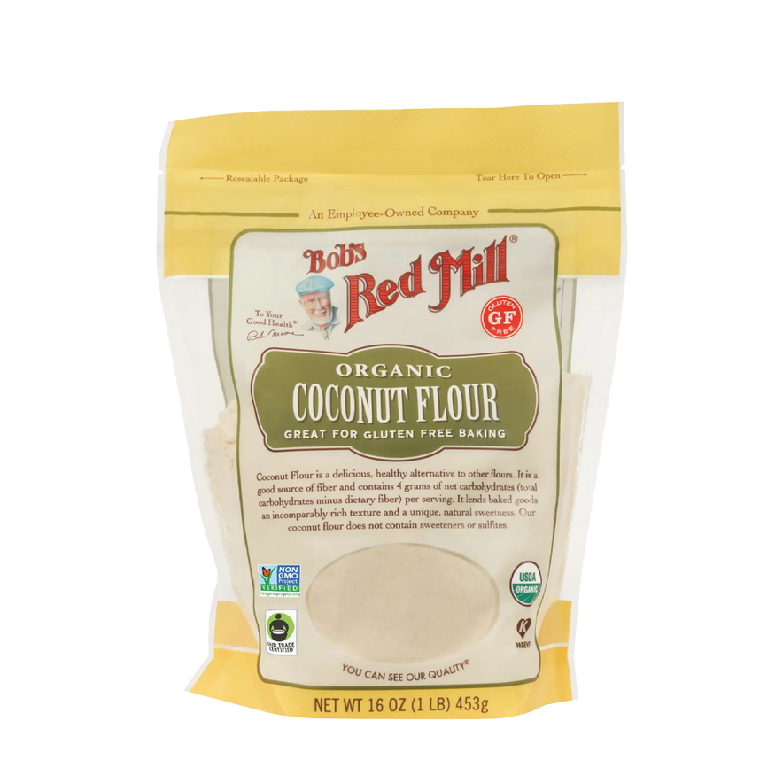 Bob’s Red Mill Organic Coconut Flour is finely ground from dried, organic coconuts, providing a naturally gluten-free and high-fiber alternative for baking and cooking. With a mild, slightly sweet coconut flavor, it works beautifully in cakes, cookies, muffins, pancakes, and other recipes, adding moisture and nutrition to your creations.