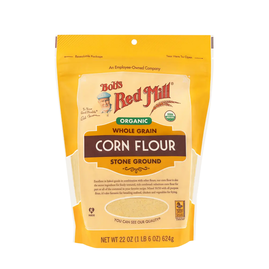 Bob’s Red Mill Organic Whole Grain Corn Flour is finely ground from yellow whole sweet corn kernels, retaining all the protein, fiber, and nutrients from the germ, bran, and endosperm. Ideal for breading or combining with wheat or white flour in baked goods, it adds flavor, color, and nutrition. Substituting corn flour for cornmeal in cornbread yields a softer, denser texture with beautiful slices, and adding it to bread dough enhances both taste and appearance. For gluten free baking, Bob’s Red Mill also offers a gluten free corn flour, and for authentic homemade tortillas, their masa harina is the perfect choice.