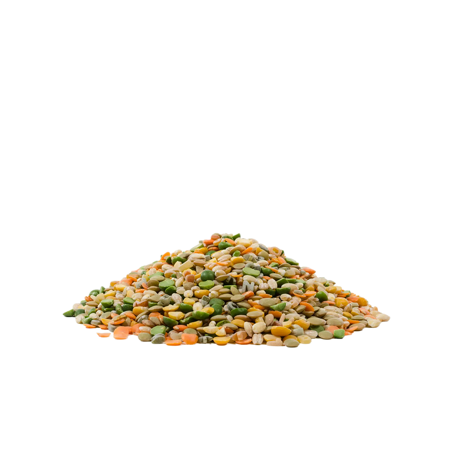 Split Green Lentils, Split Red Lentils, Split Yellow Peas, Pearl Barley, Cracked Wheat, Carrots, Onion, Spinach, Celery, Garlic, Parsley, Spices, Salt.