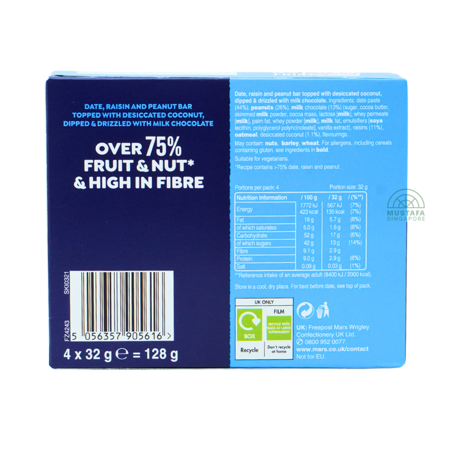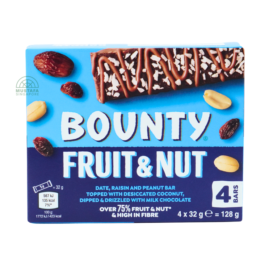 The Bounty Fruit & Nut Bar combines tropical coconut with juicy fruit pieces and crunchy nuts coated in smooth milk chocolate. Each bar provides a burst of flavour and texture that is both refreshing and satisfying. Perfect for snacking, sharing or adding to lunch boxes. The 4-piece pack offers convenient portioning. A tropical treat enhanced by fruity and nutty richness.