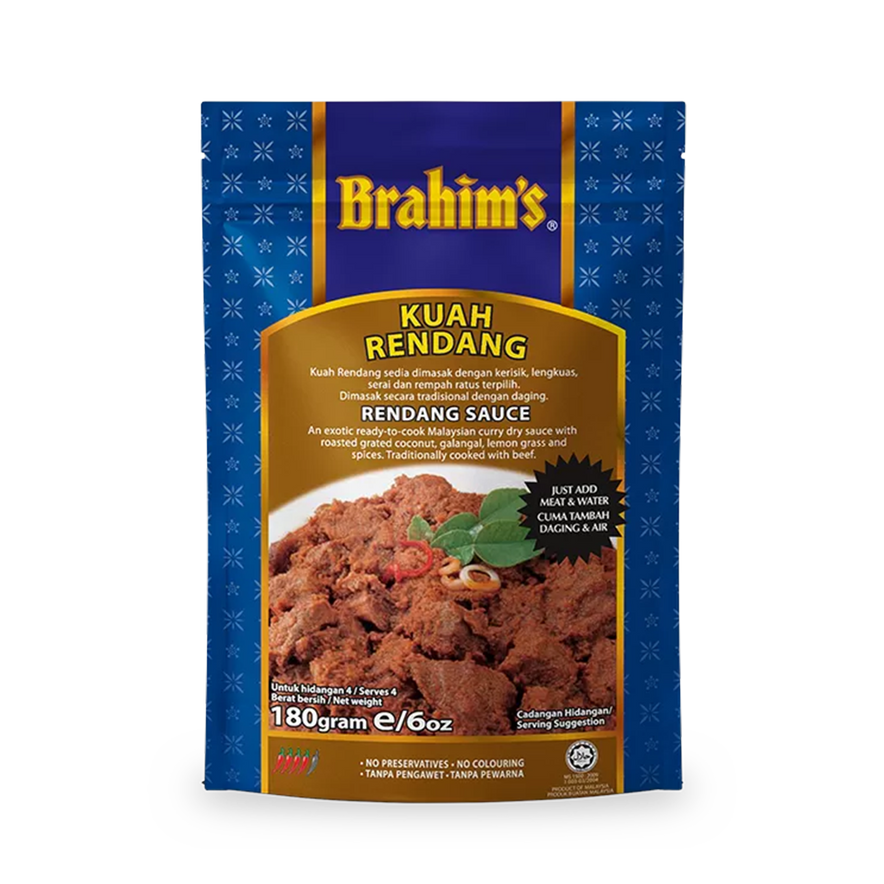 Brahim's Rendang Sauce delivers the authentic taste of Malaysia's famous beef rendang. Slow-cooked spices, coconut milk, and herbs create a rich, aromatic sauce that pairs perfectly with beef, chicken, or lamb. Ready-to-use and convenient, it brings traditional home-cooked flavor to your table in minutes.