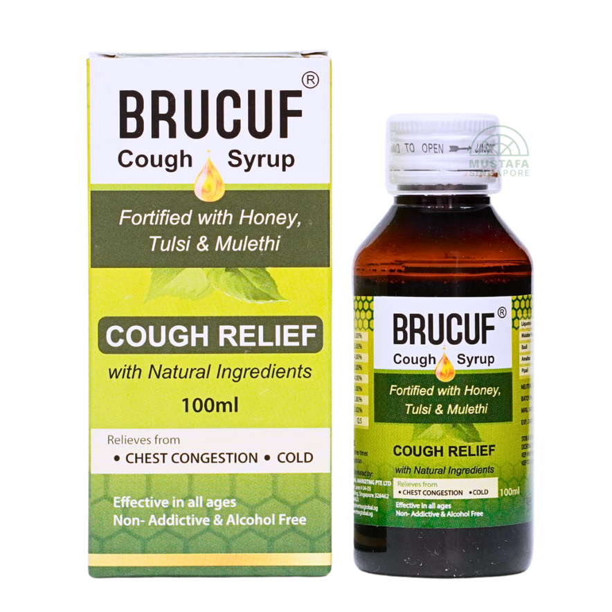 BRUCUF Cough Syrup is formulated to help relieve cough and soothe the throat. It supports respiratory comfort and helps reduce the frequency of coughs, providing fast and effective relief.