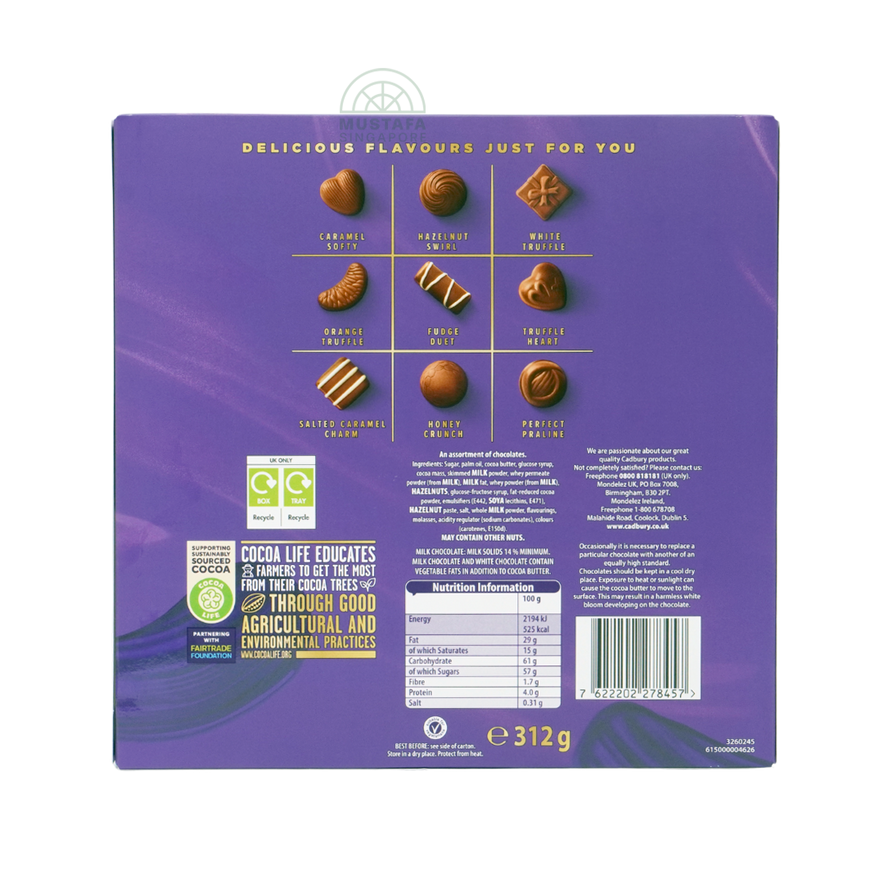 Cadbury Milk Tray offers a luxurious collection of assorted milk chocolates with indulgent centres. Each piece provides a different flavour experience, ranging from caramel to fruit notes. The elegant box presentation makes it perfect for gifting or special occasions. Smooth textures and rich flavours highlight Cadbury's heritage in fine chocolate craftsmanship. A classic chocolate box cherished by many.