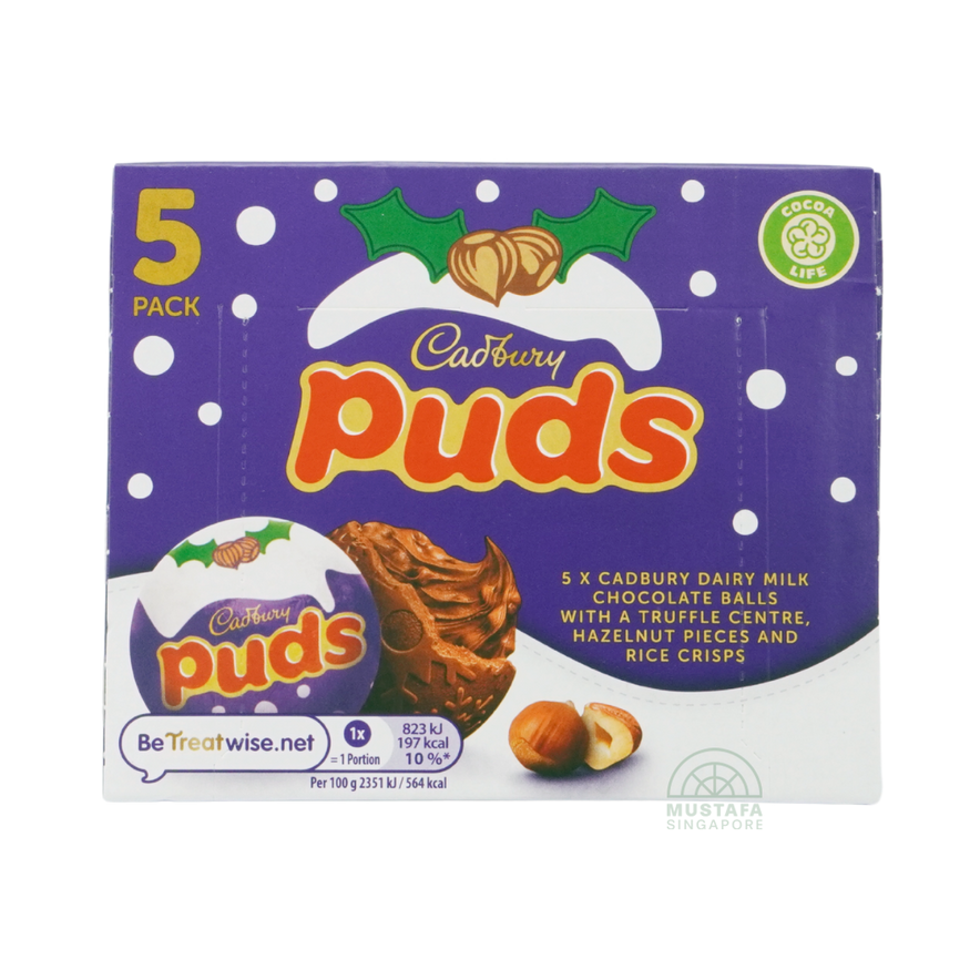 Cadbury Puds are festive chocolate spheres filled with a rich truffle centre, biscuit pieces and smooth hazelnut cream. Each piece offers a delightful combination of textures and seasonal flavours. Perfect for gifting, sharing or holiday celebrations. The 5-piece pack brings joy and indulgence in small portions. A charming seasonal treat.