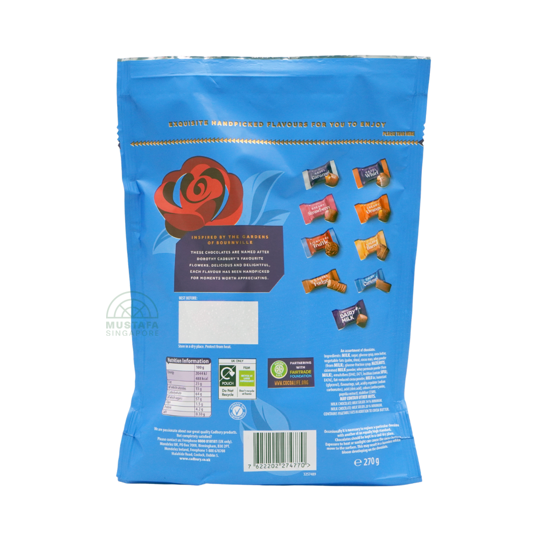Cadbury Roses 270g contains a delightful mix of iconic chocolates known for their creamy fillings, crunchy textures and smooth flavours. Ideal for gifting or communal snacking, each piece brings a nostalgic taste experience. The assortment ensures there's something for everyone to enjoy. Perfect for celebrations or quiet indulgent moments. A beloved selection for chocolate fans worldwide.