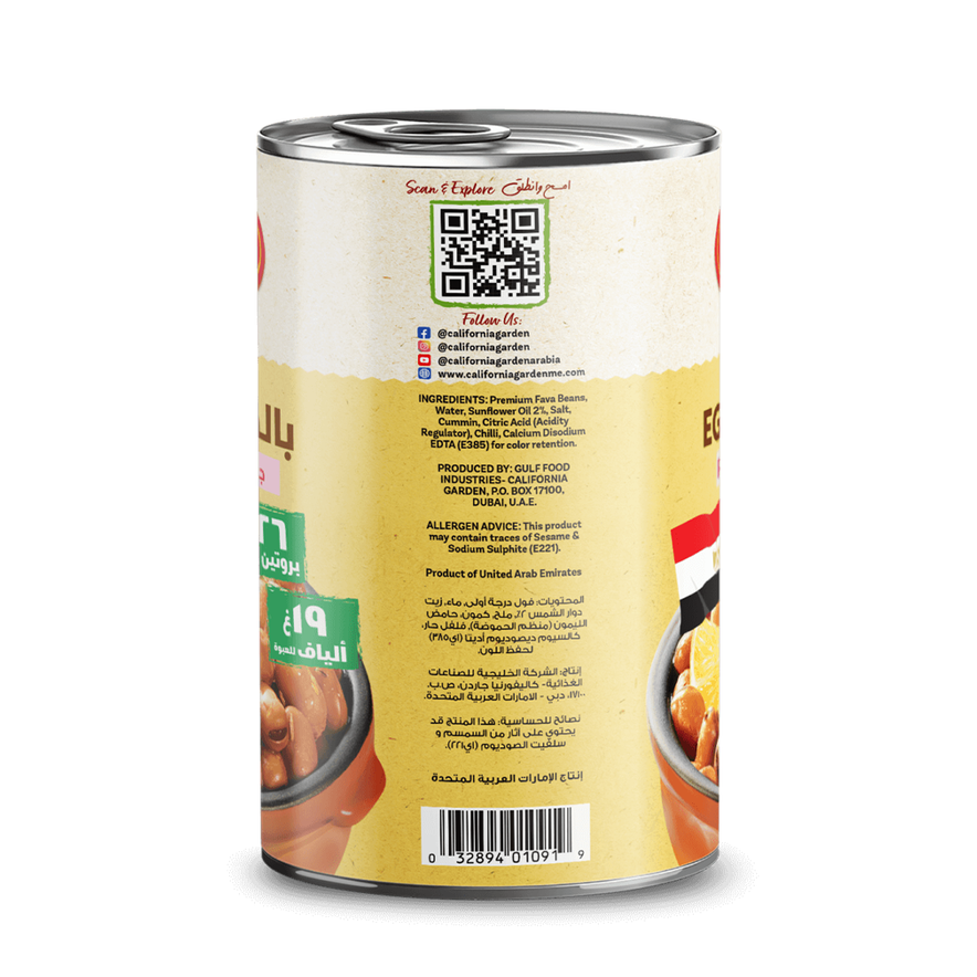 California Garden Fava Beans Egyptian Recipe with Cumin and Lemon are prepared with cumin, lemon, and spices for a zesty, authentic Egyptian flavour. Convenient and nutritious, they can be enjoyed straight from the can or heated as a dip, side dish, or main meal.