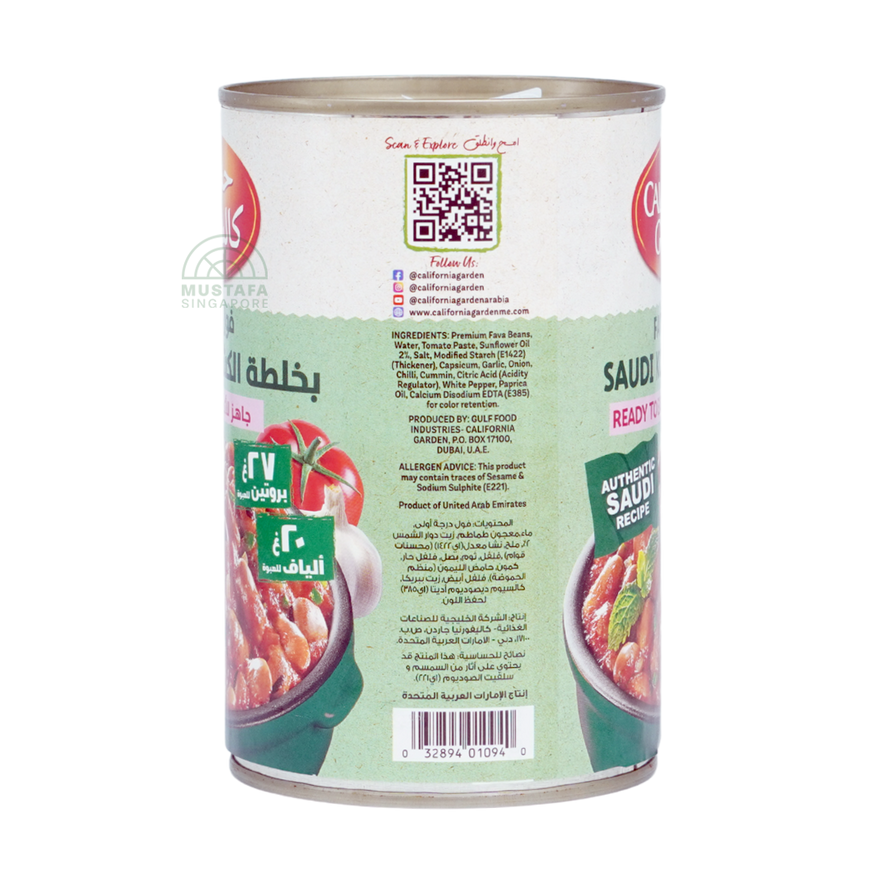 California Garden Fava Beans Saudi Koshna Recipe Ready to Eat are cooked fava beans prepared in a traditional Saudi Koshna recipe with tomato and spices, delivering authentic Middle Eastern flavour in every bite. Perfect as a ready-to-eat meal, dip, or side dish, they bring both convenience and nutrition to your table.