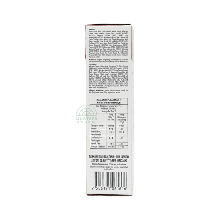 Milk Solids, Mushroom Powder, Cheese Powder, Wheat Flour, Croutons.