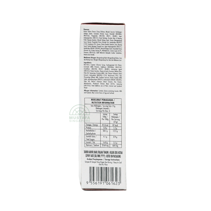 Milk Solids, Mushroom Powder, Chicken Powder, Wheat Flour, Croutons.