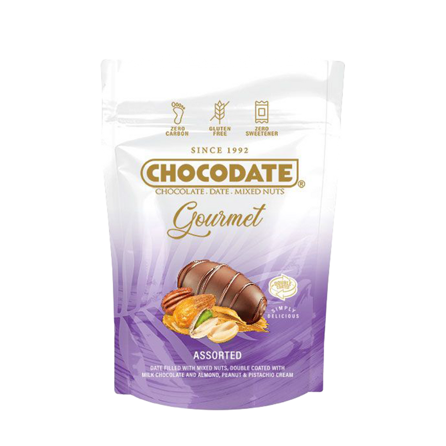 Chocodate Gourmet Assorted is a premium collection of creamy, nut-based spreads featuring a variety of flavors like Peanut Butter, Butter Pecan, and Pistachio Truffle. Each spread combines high-quality nuts and chocolate for a smooth texture and rich, indulgent taste. Packed with healthy fats, protein, and natural nutrients, they’re perfect for spreading on bread, enhancing desserts, or enjoying as a nutritious snack. Free from artificial additives and preservatives, this assortment offers a wholesome and luxurious experience. Caution: Contains nuts and may trigger allergies in sensitive individuals. Store in a cool, dry place and consume promptly after opening.