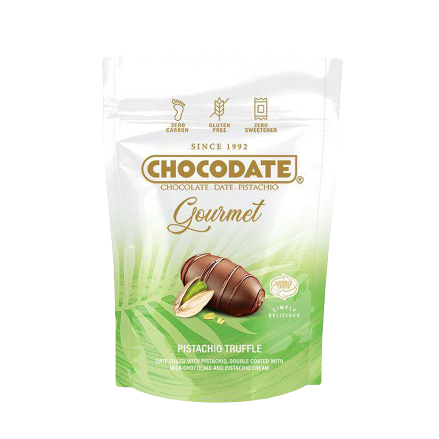 Chocodate Gourmet Pistachio Truffle is a luxurious, creamy spread made from premium pistachios and rich chocolate, delivering a smooth texture and decadent nutty flavor. Packed with healthy fats, protein, and natural nutrients, it’s ideal for spreading on bread, enhancing desserts, or enjoying as a gourmet snack. Free from artificial additives and preservatives, it provides a wholesome and indulgent treat. Caution: Contains nuts (pistachios) and may trigger allergies in sensitive individuals. Store in a cool, dry place, and consume within the recommended period after opening to maintain freshness.