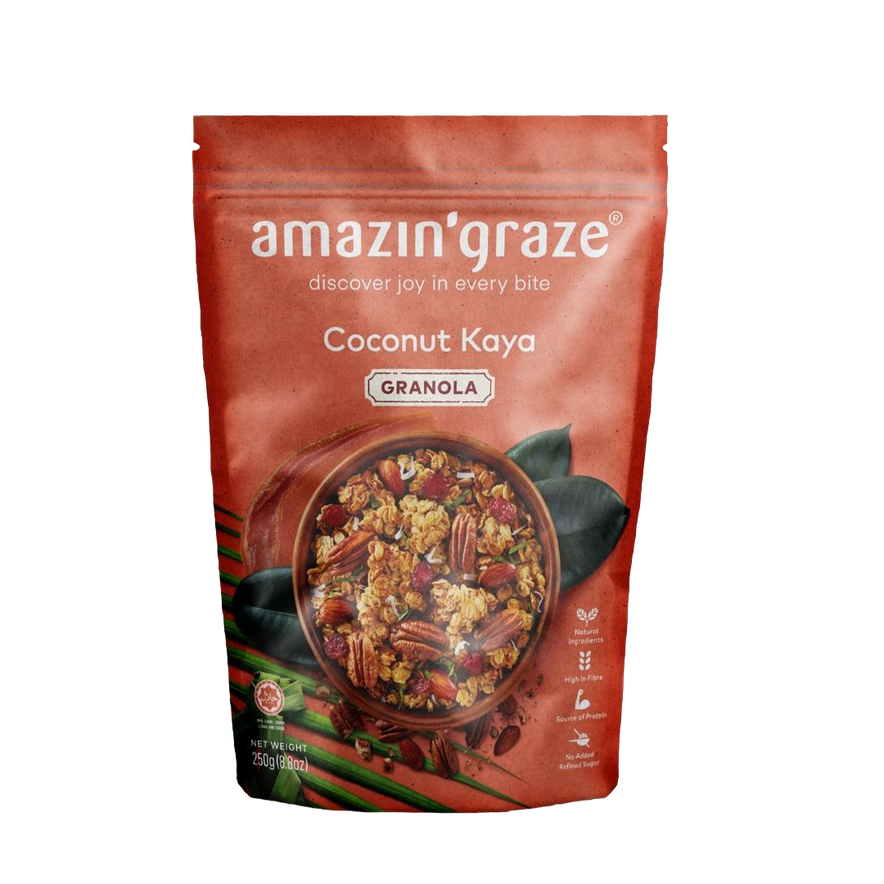 Crisp oats meet coconut flakes and kaya-inspired flavour in this tropical granola. Amazin’ Grace Coconut Kaya Granola is a crunchy, fragrant breakfast staple or snack, made with natural ingredients and coconut sweetness.