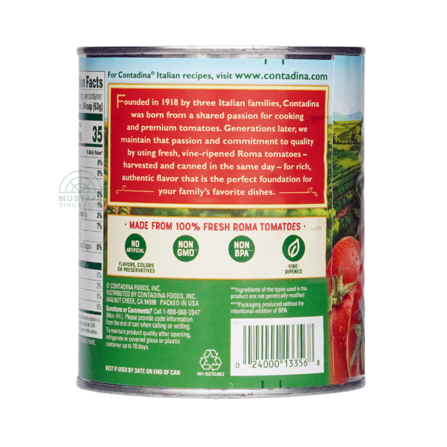 Capture the authentic taste of Italy with Contadina Tomato Purée, crafted from 100% vine-ripened Roma-style tomatoes. This richly thick and vibrant purée delivers a bold, concentrated tomato flavour that forms the perfect base for hearty stews, homemade pasta sauces, baked dishes, and more. With its velvety texture, it effortlessly blends with broths, wine, or water to enhance consistency and depth of flavour—no preservatives added—just premium tomatoes at their peak.