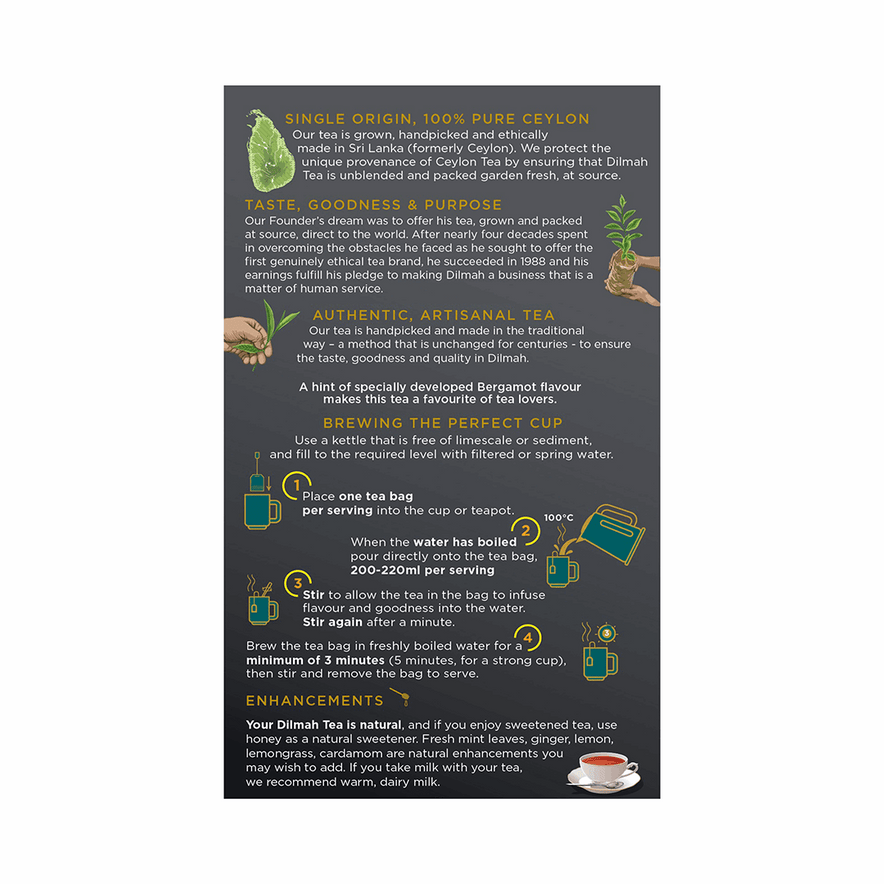 ndividually foil-wrapped for freshness, Dilmah Foil Envelope Earl Grey Tea combines premium Ceylon tea with a touch of bergamot for a fragrant and refreshing brew. Ideal for both home and hospitality use.