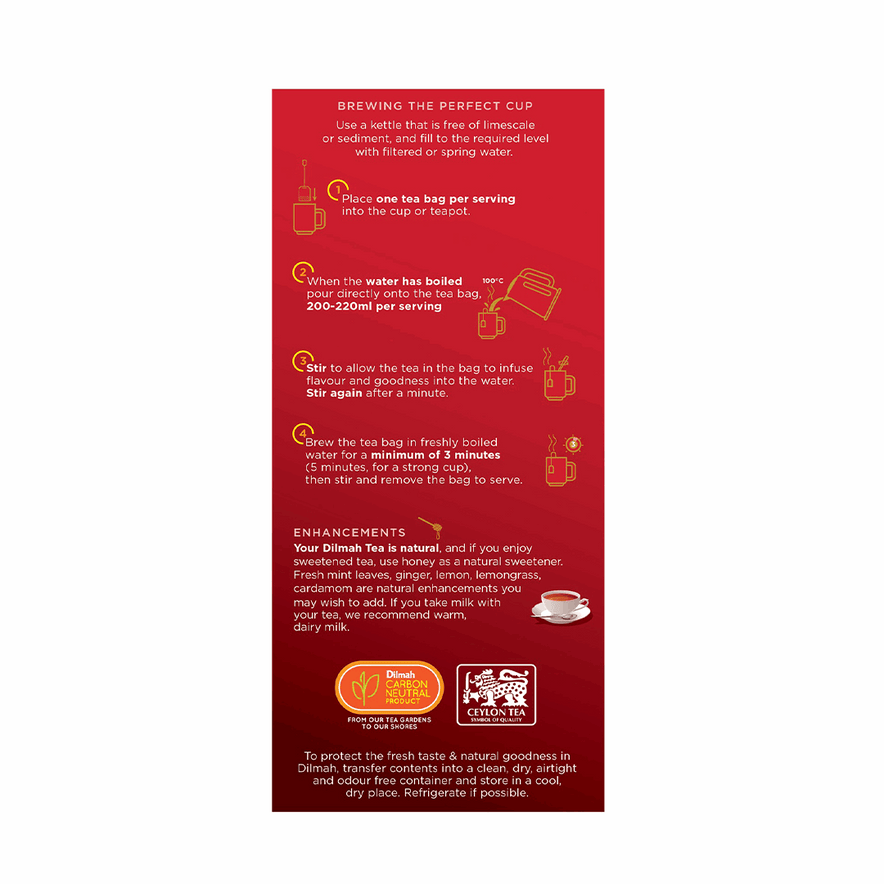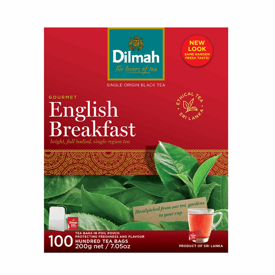 Kickstart your morning with Dilmah English Breakfast Tea, a robust blend of pure Ceylon black tea. Known for its bright colour and brisk flavour, this tea pairs perfectly with milk for a hearty and satisfying cup.