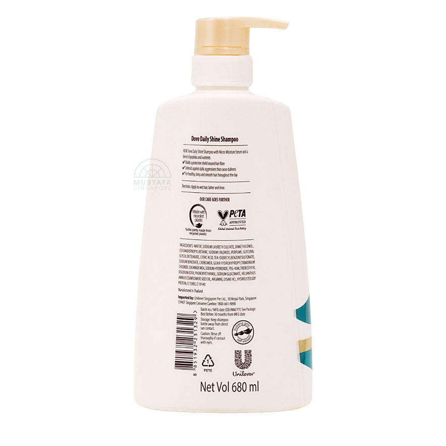 Dove Daily Shine Shampoo with Micro Moisture Serum gently cleanses and adds a healthy shine to normal hair. It protects hair from daily wear and tear and leaves it soft and manageable.