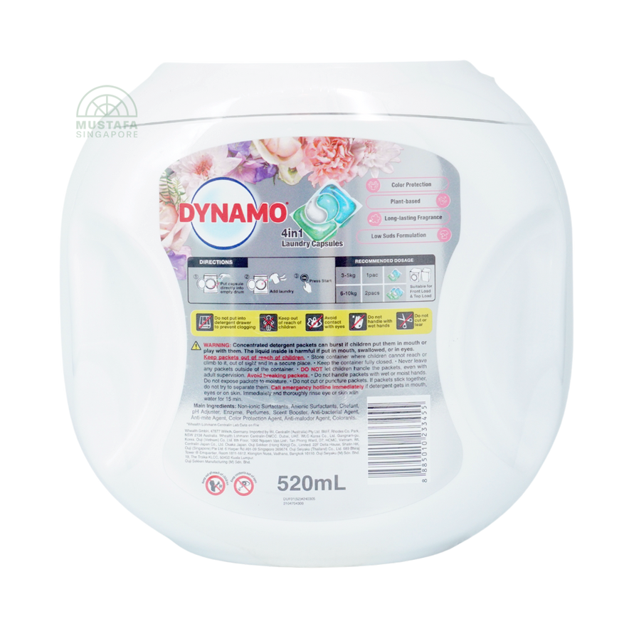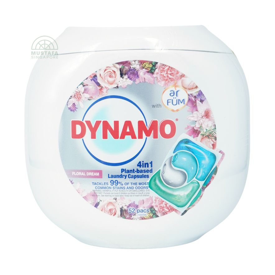 Power through stains while enjoying a dreamy floral fragrance. Dynamo 4-in-1 Capsules deliver powerful stain removal, odor elimination, fabric care, and lasting freshness - all in one convenient pod. A hassle-free way to get vibrant, fresh laundry every time.