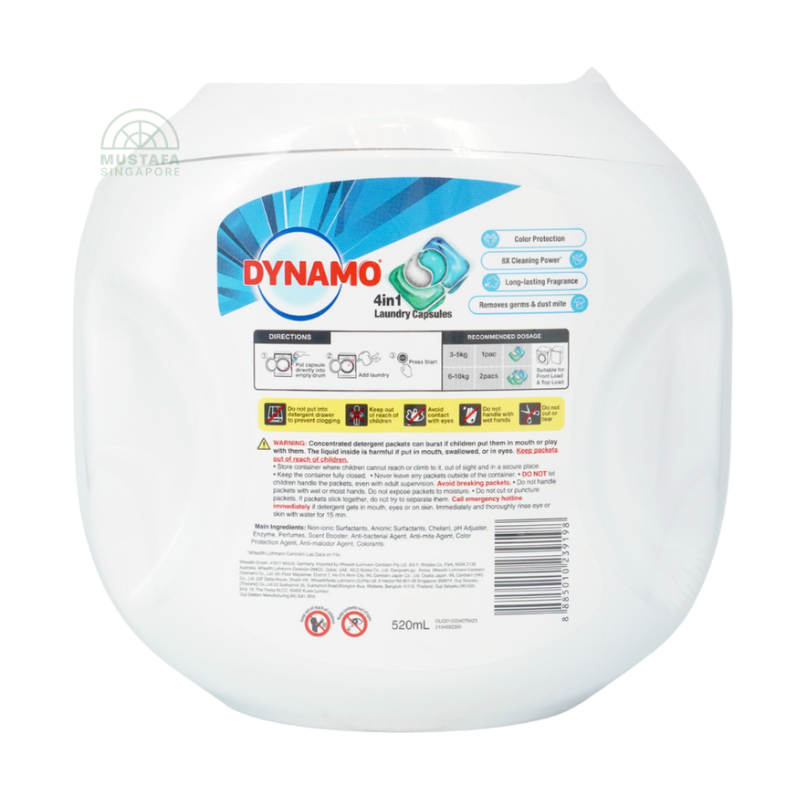 Experience the convenience and effectiveness of Dynamo 4in1 Laundry Capsules - Fresh. Each capsule combines four powerful actions - detergent, stain remover, brightener, and odour eliminator - into one easy-to-use pod. Designed to tackle tough stains and leave your clothes with a long-lasting fresh scent, these capsules are suitable for both top and front-loading washing machines.