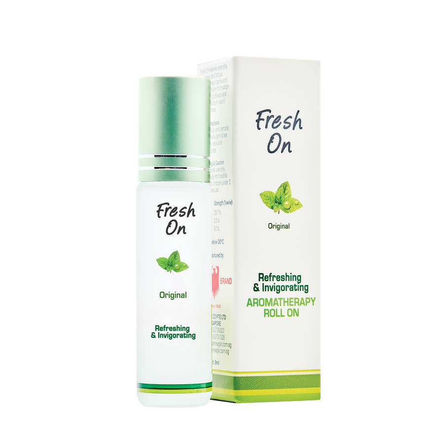 Fresh On Original is a compact aromatherapy roll-on that refreshes the mind while relieving headaches, motion sickness and insect bites.