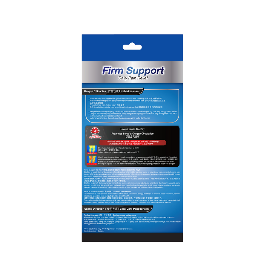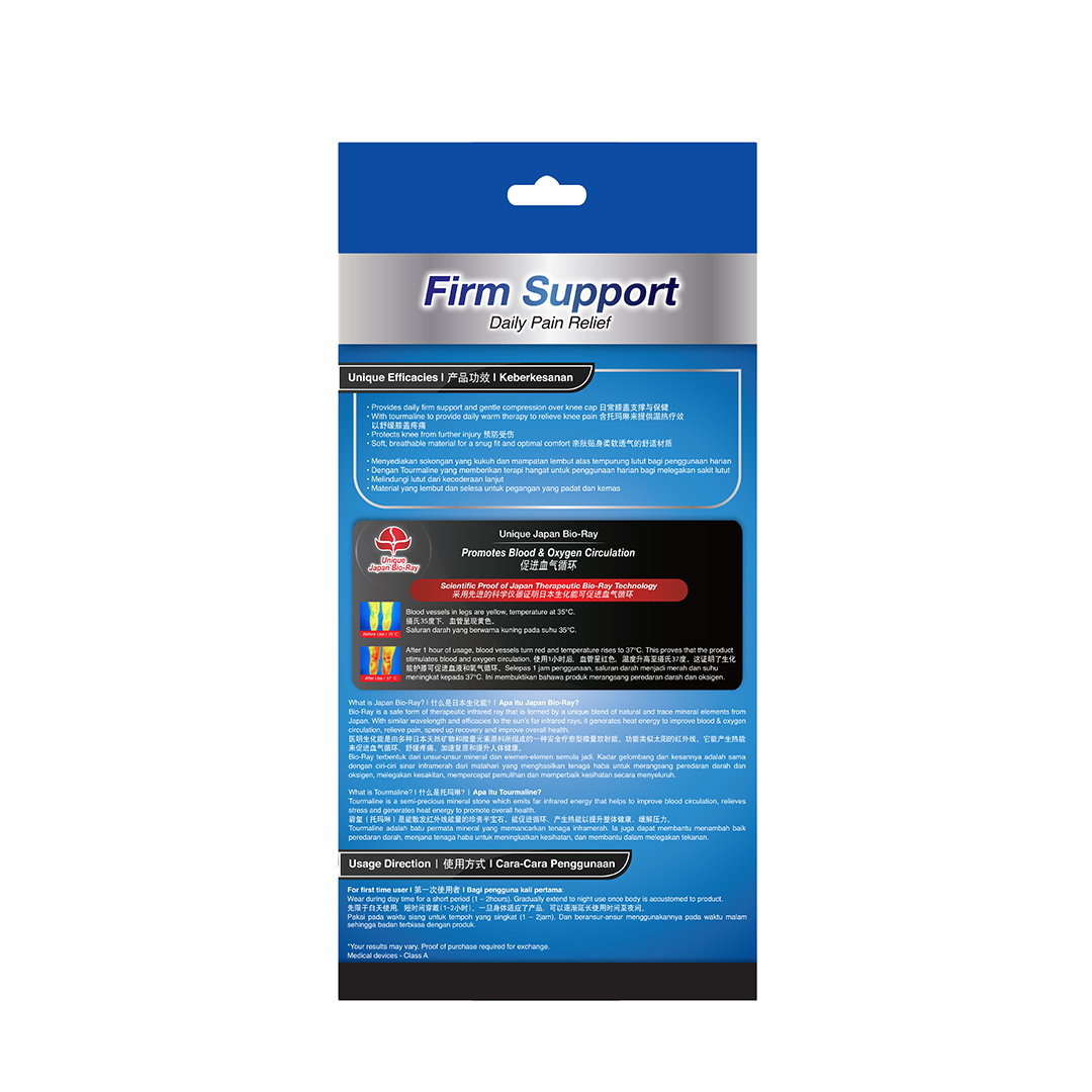 With built-in metal reinforcements and Bio-Ray therapy, this black knee guard delivers enhanced knee stability and superior support. It helps alleviate pain, reduce inflammation, and promote blood circulation during movement or recovery.