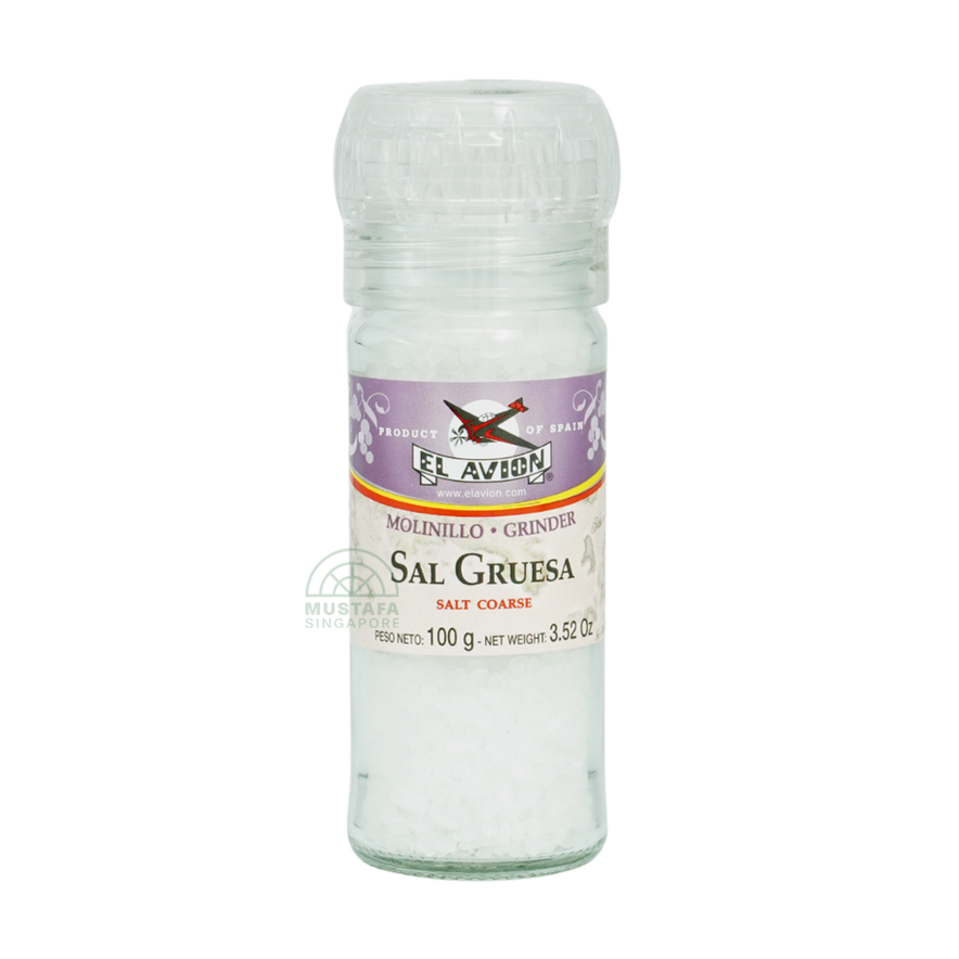 Season your meals with precision using El Avion Salt Coarse with Grinder 100g. Coarse crystals ideal for grinding fresh salt onto your dishes.