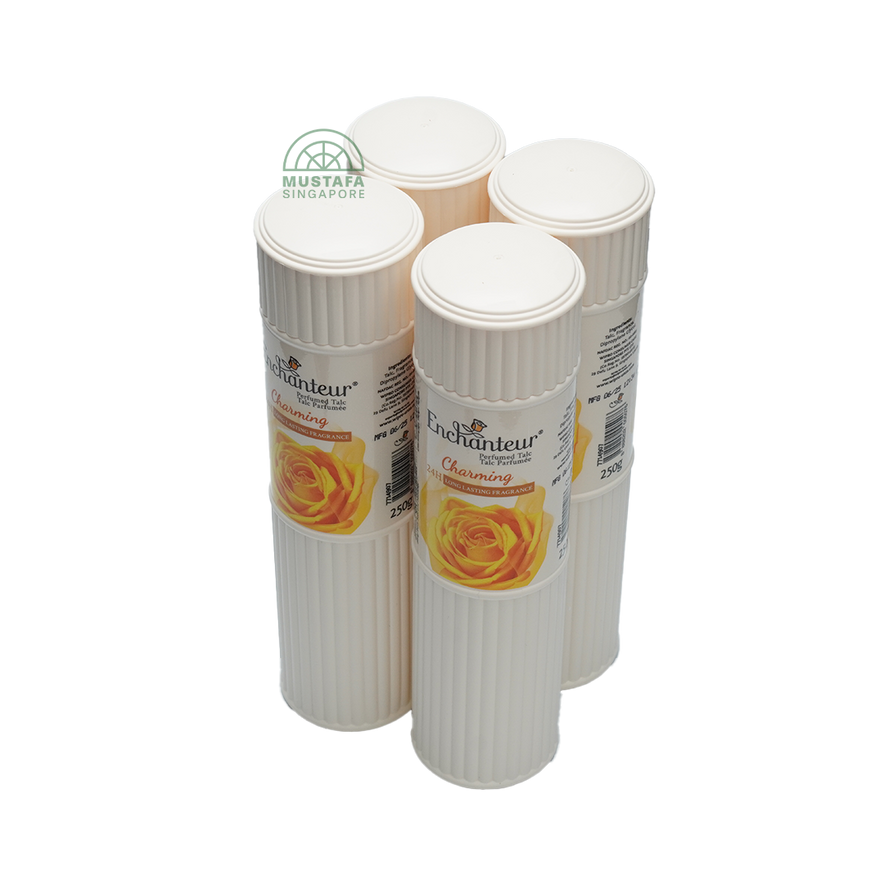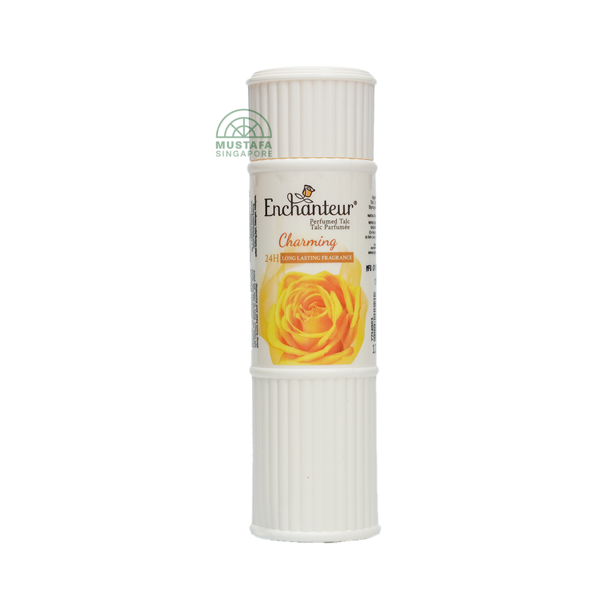This elegant talcum powder envelopes the skin in the Charming signature scent of fresh citrus and soft florals. Its smooth and silky texture keeps the skin dry, comfortable, and beautifully fragrant throughout the day.