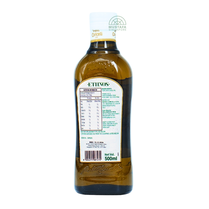 Ethnos 100% Pure Avocado Oil (500ml) is cold-pressed from fresh avocados, delivering a mild, buttery flavour and high nutritional value. With its high smoke point, it's excellent for frying, grilling, sautéing, and also perfect as a finishing oil.