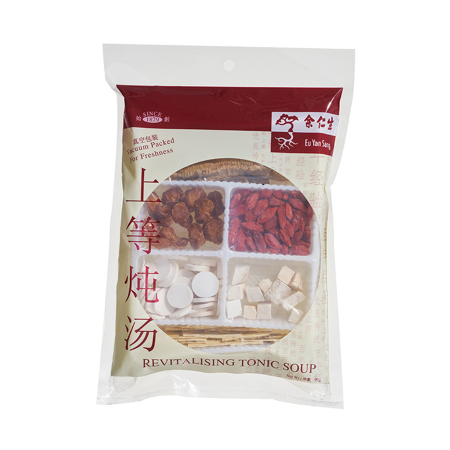 Eu Yan Sang Revitalising Tonic Soup (上等炖汤) is a premium herbal soup blend designed to strengthen the body, support energy, and nourish Qi. Made with high-quality herbs traditionally used to restore vitality, it is ideal for regular wellness maintenance.